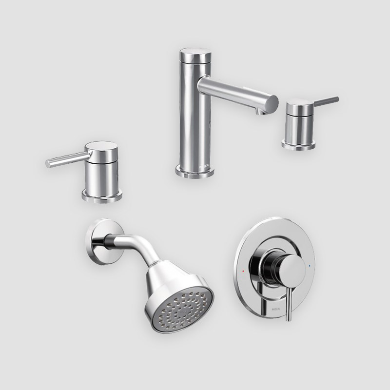Bathroom Faucet(s) – Moen: 2 Sinks, Shower: Align Widespread: Chrome: T6193